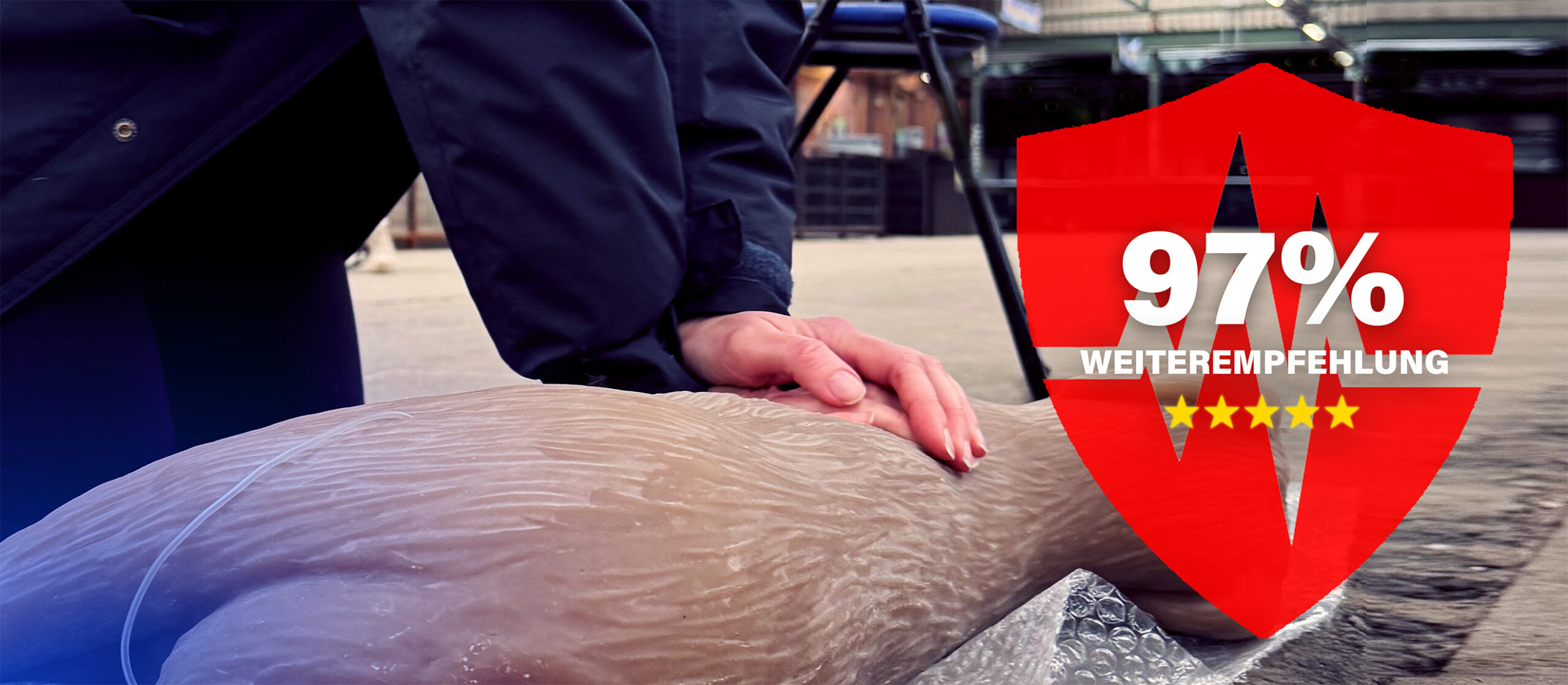 Gemeinsam mit deinem Hund lernst du wichtige Sofortmaßnahmen - im sicheren Umfeld und mit viel Abstand zu anderen.
