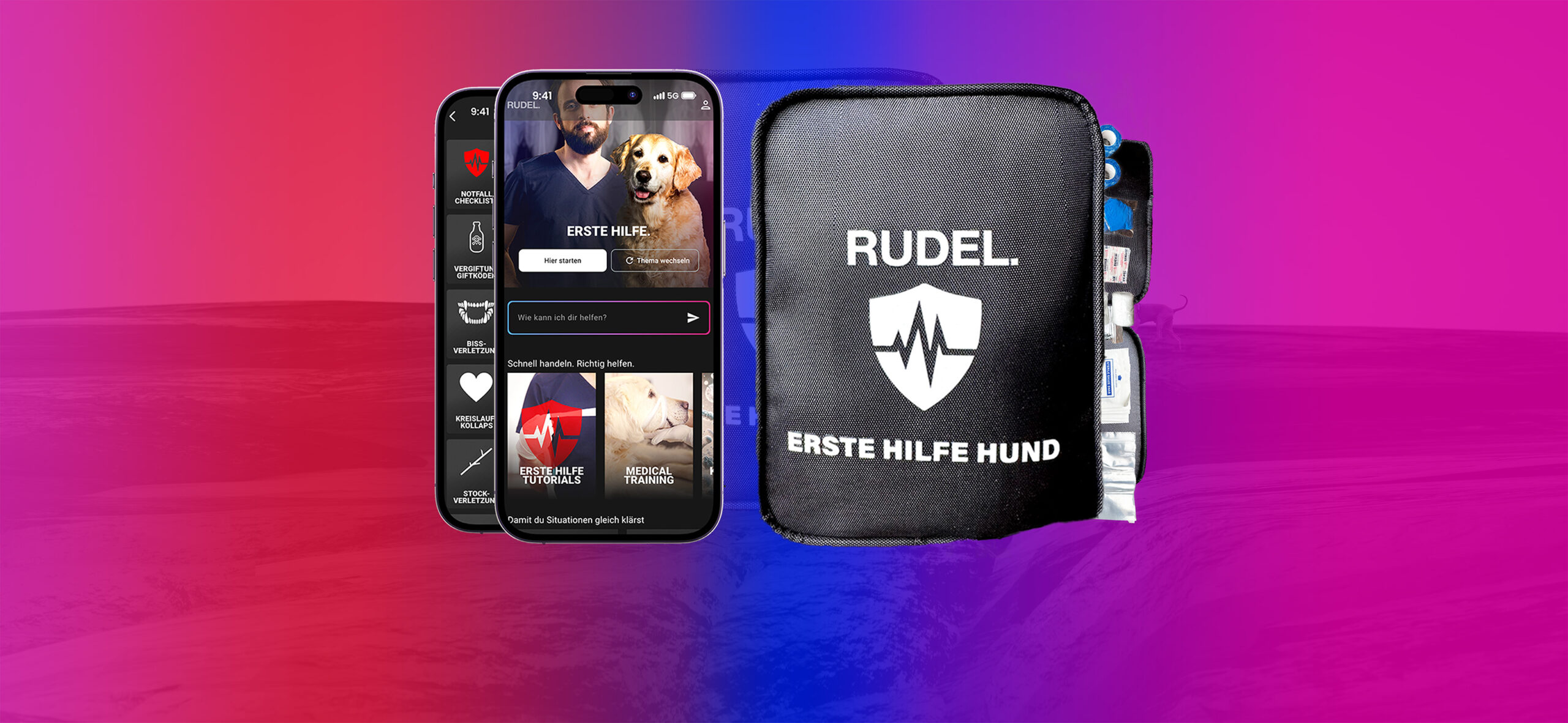 *Das Erste-Hilfe-Kit wird im Rahmen einer zeitlich begrenzten Einführungsaktion beim Abschluss eines RUDEL. Premium-Abonnements bereitgestellt. Das dargestellte Angebot gilt für das kombinierte Angebot aus RUDEL. Premium und dem RUDEL. Erste-Hilfe-Kit gemäß den auf dieser Seite beschriebenen Konditionen. Die Aktion gilt nur solange der Vorrat reicht. Eine Barauszahlung oder nachträgliche Verrechnung des Aktionsvorteils ist ausgeschlossen. Pro Bestellung kann nur eine Aktion eingelöst werden. Der Versand des Erste-Hilfe-Kits erfolgt nach Abschluss von RUDEL. Premium. Die aktuelle Lieferzeit beträgt in der Regel 5–7 Werktage. Bei sehr hoher Nachfrage kann sich die Lieferung bis zur nächsten Produktionscharge verzögern. In diesem Fall kann die Lieferzeit bis zu 14 Wochen betragen. Der Zugang zur RUDEL. App erfolgt gemäß den jeweils gültigen Nutzungs- und Abonnementbedingungen. Der Anbieter behält sich vor, die Aktion bei Vorliegen wichtiger Gründe anzupassen oder vorzeitig zu beenden. Anbieter: RUDEL GmbH
